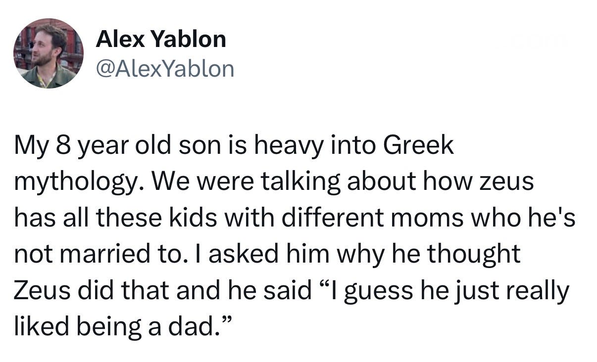 I’ve been writing this newsletter for five years. And the thread running through it all is the overwhelming work that dads face as they wrestle with existential questions at the heart of modern fatherhood. To question our beliefs. Doubt the stories we inherited. Imagine new futures. Create spaces where we can be vulnerable, freed from the pressure to perform to societal norms around ambition and success.