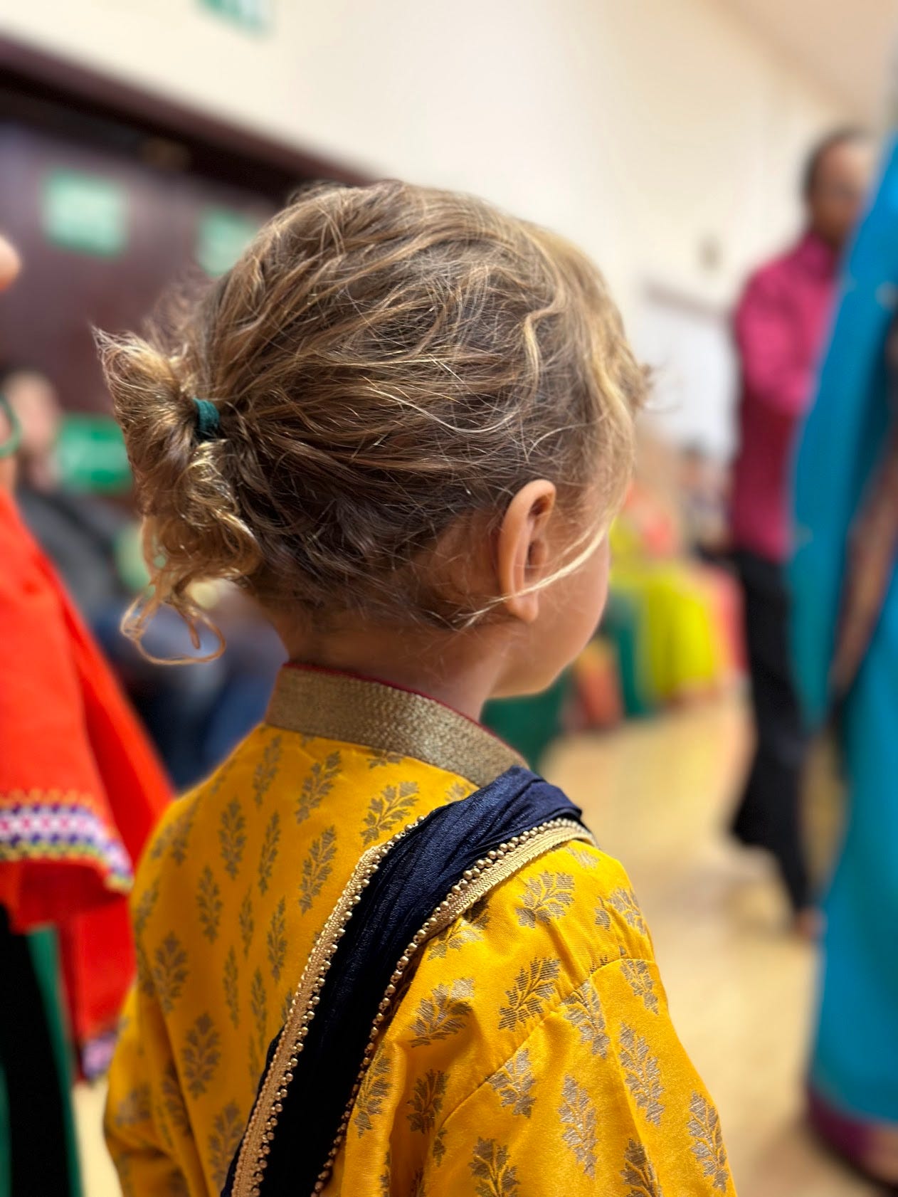 Padme’s curiosity reached new heights this year, and it infected all around her. Aunties lined up to teach her what each part of the proceeding signified, the steps for the various dances with increased complication throughout the evening. And if following that curiosity sometimes ended up with a sneaky chocolate or Mittai, then that’s to be expected right? Just like I’d sit in the kitchen watching my dad cooking Christmas dinner, knowing it’d result in an early sampling of the turkey, or a delicious preview of the bacon that had cooked atop, repeatedly basted in the juices of the bird.