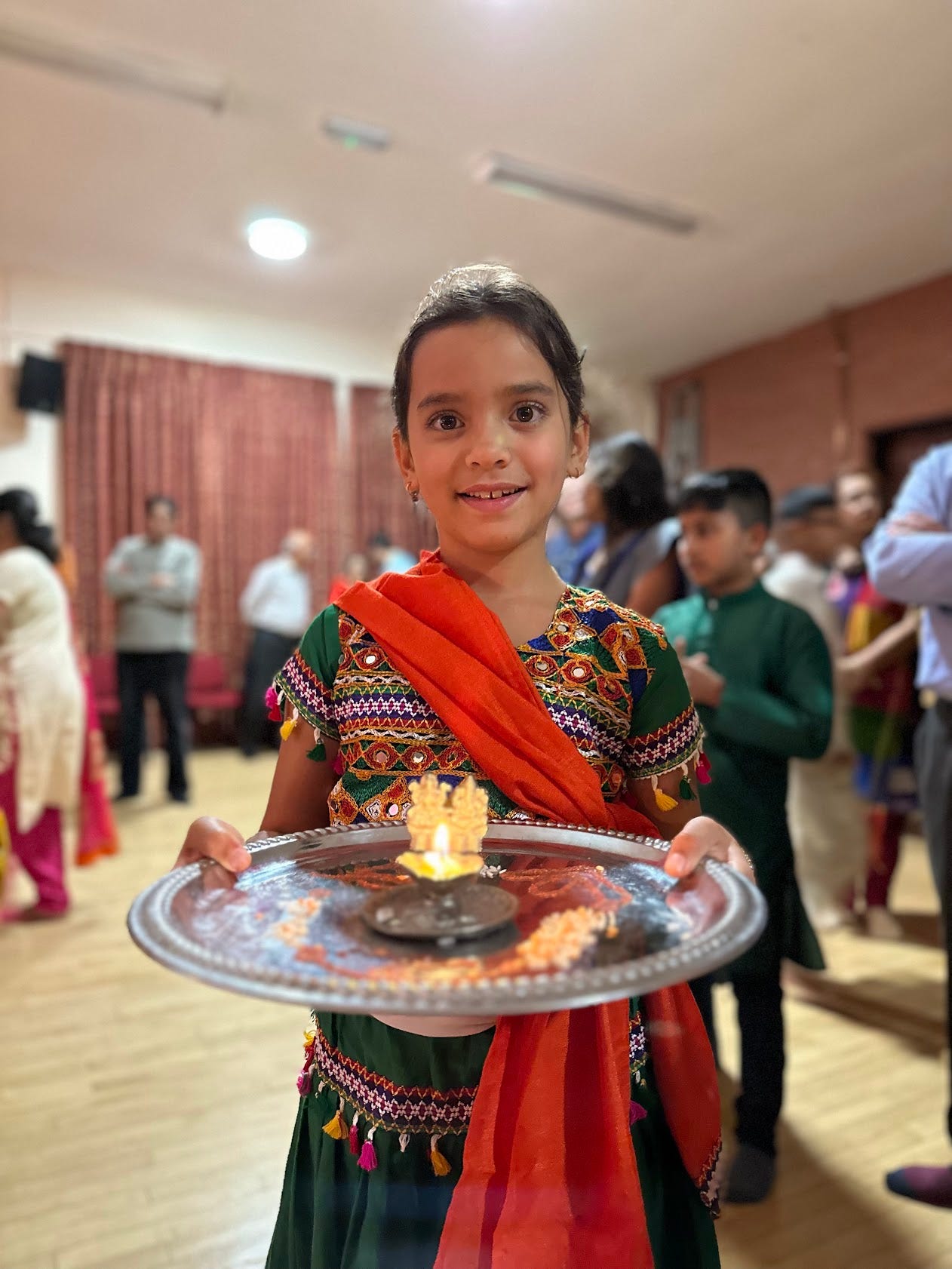 Our celebration was orders of magnitude smaller, but no less jubilant. A community of Indian immigrants who congregate at this time every year—a hired hall, similar to many across the UK, and all the towns and cities the Indian diaspora have settled in across the world—to worship, dance, eat, and enjoy the company of one other.