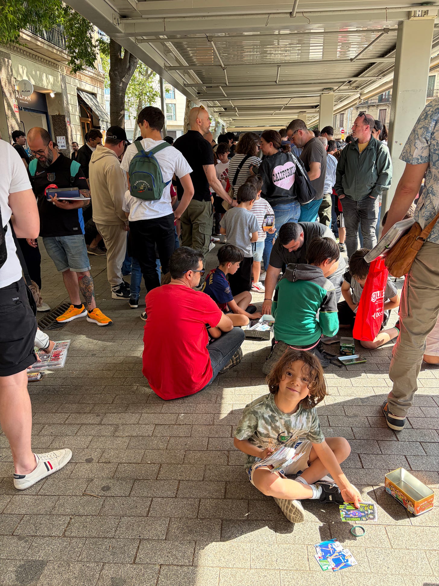 So, to cast a wider net, we hit up a local meetup at Mercat de Sant Antoni, where kids (and, as you’ll soon see, not-kids) gather every Sunday to swap football cards. I bumped into another dad I knew there: we reminisced about the sticker albums from our youth, the ones we’ll never forget. These two naive dads thought this would be an easy way to get our sons swapping with each other. But, alas, my boy was collecting La Liga; his boy was collecting World Cup 2026.